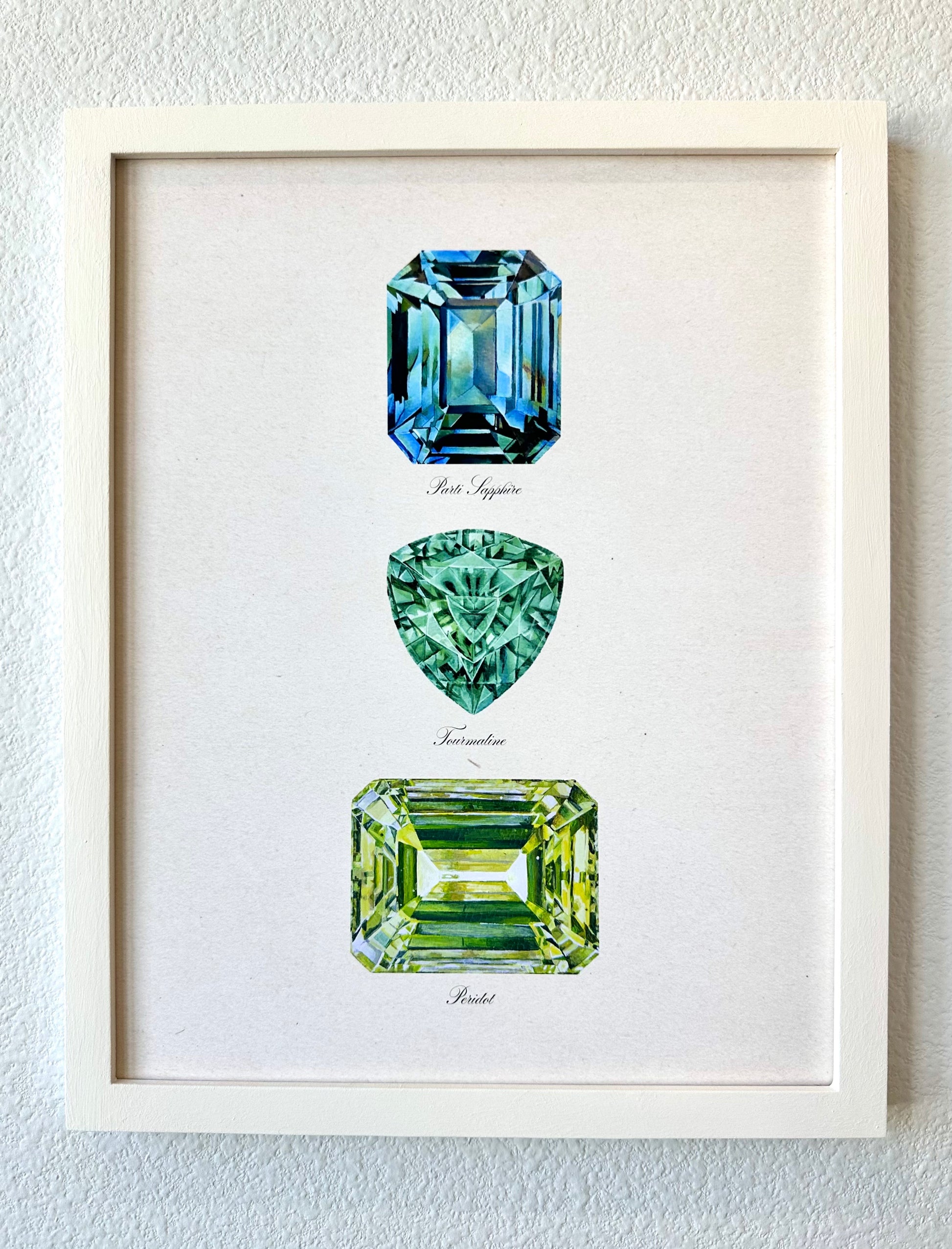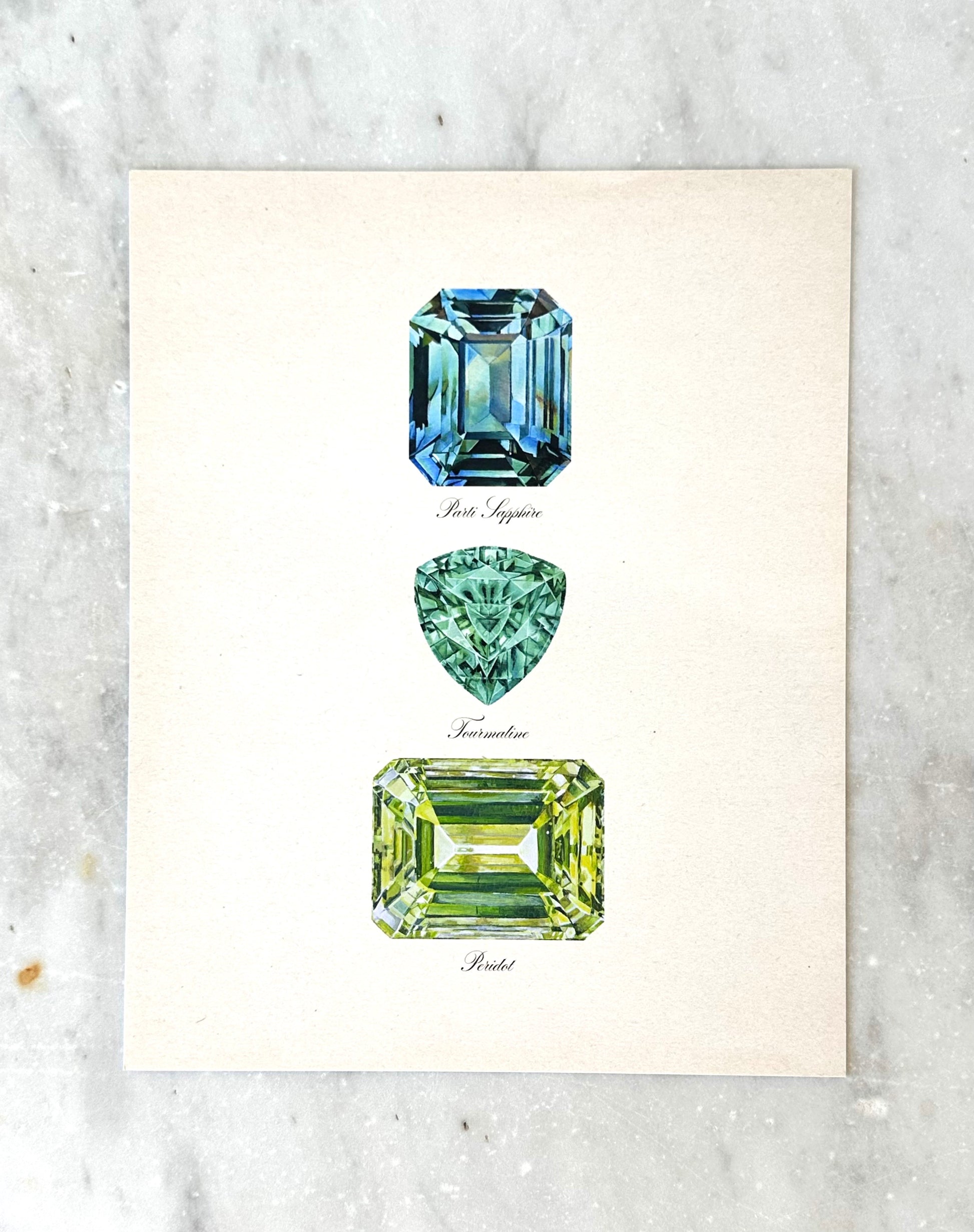 gems, nature poster, nature print, science print, sapphire, crystals, peridot, colorful decor, colorful art, colorful wall art, vintage poster, vintage nature, green decor, blue art, mint decor
